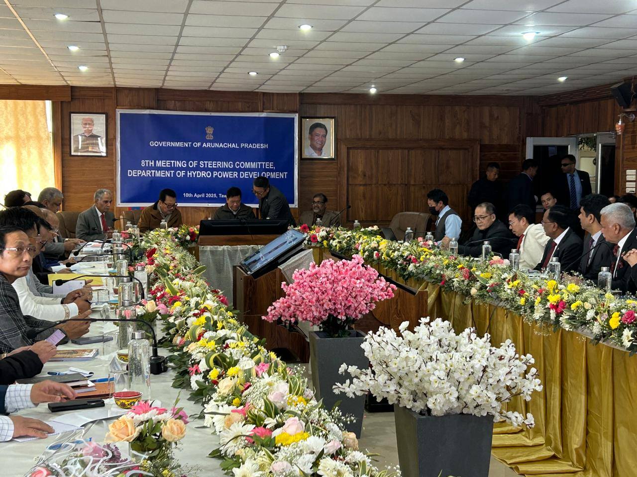 In a significant push toward strengthening Arunachal Pradesh’s Hydropower sector, Hon’ble Chief Minister of Arunachal Pradesh, Sh. Pema Khandu chaired the eighth meeting of the State Hydropower Development Steering Committee in Tawang district on 10 April 2025. During the high-level review session, the Hon'ble Chief Minister critically reviewed all 13 projects and instructed power developers and state officials to frame a timeline for all activities and adhere accordingly he also urged Power developers operating in the state to explore smaller hydropower projects in their respective river basins, in addition to large-scale ventures. Hon'ble CM added that tributaries of the state’s five major rivers hold immense potential, and tapping them could significantly add 100–300 MW to the state’s energy basket. Hon’ble Deputy Chief Minister of Arunachal Pradesh, Sh. Chowna Mein, Sh.Hari Krishna Paliwal an Adviser to the Govt. of Arunachal Pradesh holding the rank of Cabinet Minister, Chief Secretary Sh. Manish Kumar Gupta (IAS), senior state officials, and representatives from CPSUs including NHPC, SJVN, NEEPCO, and THDCIL also attended the meeting.
