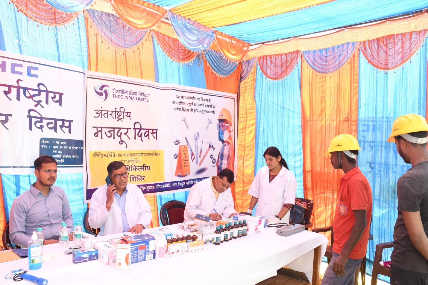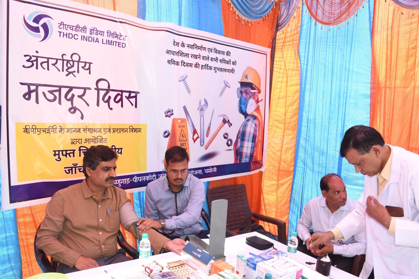 Underlining the commitment of THDC India Limited towards the welfare of workers, on the occasion of International Labor Day (01.05.2024), better health of the workers participating in the construction of the 444 MW Vishnugad-Pipalkoti Hydroelectric Project located in Chamoli district of Uttarakhand was prioritized. With the objective of enhancing their morale, productivity, and strengthening the community relations of workers with the Corporation, the HR & Administration Department of VPHEP organized a Free Medical Checkup Camp for all workers today at HCC Office Complex, VPHEP, Pipalkoti. Chief General Manager (Project) of VPHEP, Shri Ajay Verma, inaugurated the medical check-up camp for the laborers by getting his blood pressure checked. Along with him, Shri K.P. Singh, Additional General Manager (Incharge) – TBM and Power House, Shri P.S. Rawat (Additional General Manager (Incharge) – Dam), Shri J.S. Bisht (Additional General Manager (In-charge) – Environmental and Mechanical), Shri V.D. Bhatt (Senior Manager-HR & Adm.), and HCC Project Manager Mr. Sajit Kumar also got their health checked. In the camp, THDCIL Medical Officer, Dr. Shekhar Yadav, and his team, after proper investigation of the health-related problems of the workers, provided necessary consultation and medicines for the treatment of the disease. Addressing the workers, Project Head, Mr. Ajay Verma, wished and congratulated the workers on International Labor Day. He said that it is an important contribution to the innovation and development of the country. Praising the workers engaged in the construction of the VPHEP project, he said that they are not doing any ordinary work; they are making an important contribution towards the country's clean energy goals and energy security. As a token of our gratitude for your service, this health camp is being organized to ensure your well-being. Please everyone take advantage of this. Along with this, he appealed to all the workers to take special care of safety while working and to work only by wearing all safety equipment. On this special occasion, Shri Y.S., member of the organizing committee of the health check-up camp, Chauhan (Deputy Manager), Mr. Avinash Kumar (Executive Trainee) from Public Relations Department, Mr. Ankit Kumar Jha (Executive Trainee), and senior officials of HCC were present. Mr. Durga Das Mandal (Deputy Manager, Paramedical), Mr. Girish Purohit (Nursing Assistant), and Mrs. Chandrakala Hatwal (ANM) were present in the camp from the dispensary department.