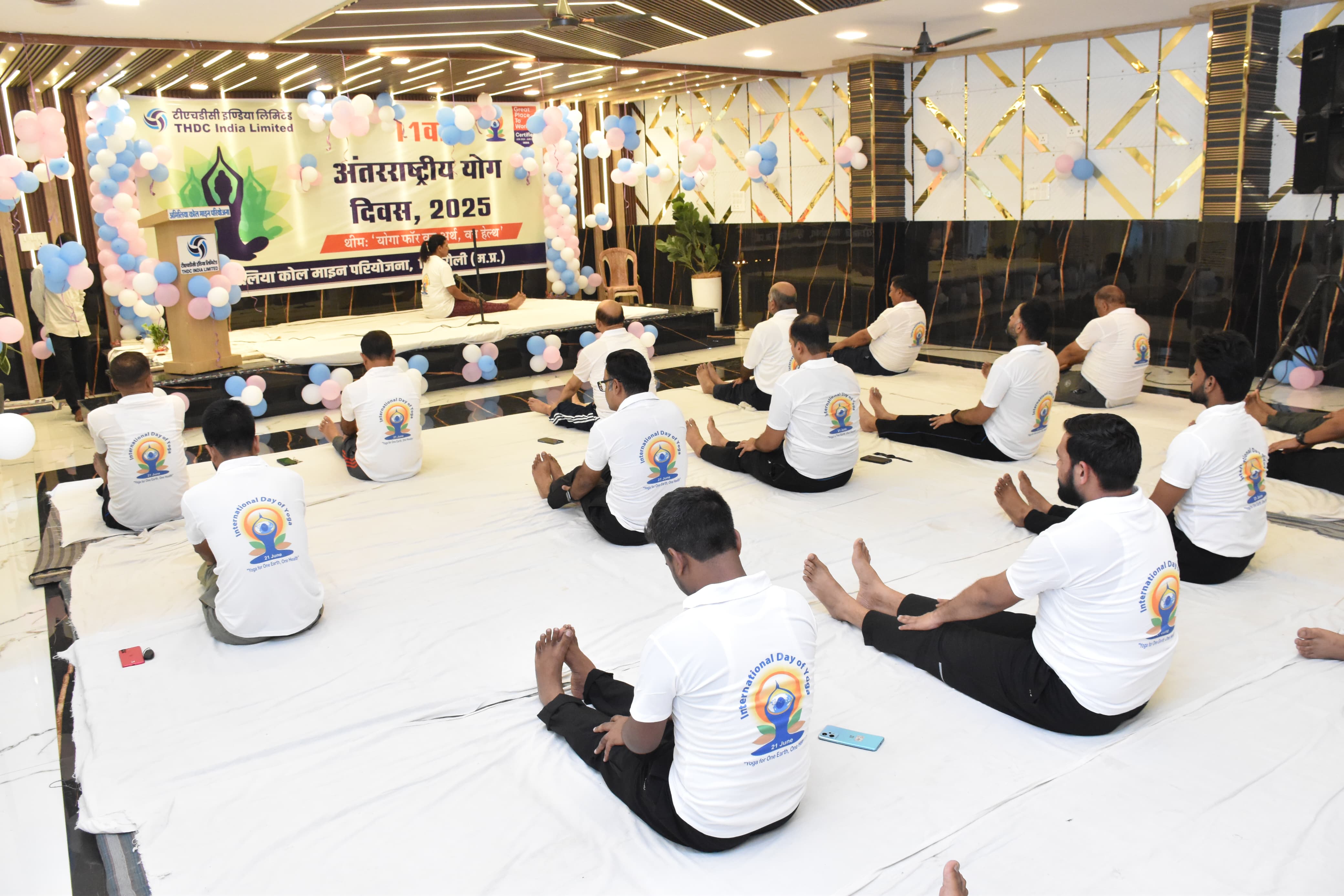 On 21st June 2025, Amelia Coal Mine Project, Singrauli celebrated International Yoga Day with great enthusiasm and widespread participation. The highlight of the program was a special 1.5-hour Yoga session conducted by a yoga trainer, Smt. Kirti Pandey aimed at promoting health, mindfulness, and physical well-being among the employees. The yoga session began with an introduction to the importance of yoga in daily life, followed by guided practice. The trainer led the participants through a structured routine that included breathing exercises (pranayama), basic and intermediate yoga postures (asanas), stretching, and relaxation techniques.