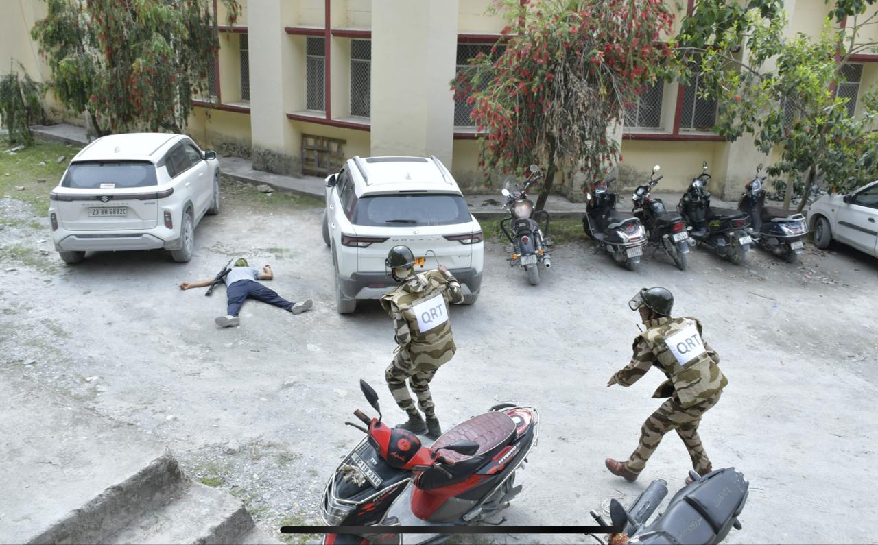 A full-scale mock drill simulating an armed terrorist attack was successfully conducted on 16 April 2025 from 11:00 AM to 11:40 AM at the Administrative Building of THDC India Limited’s Vishnugad-Pipalkoti Hydro Electric Project. The exercise was led by Shri Vishwanath Avuti, Deputy Commandant, Central Industrial Security Force (CISF).