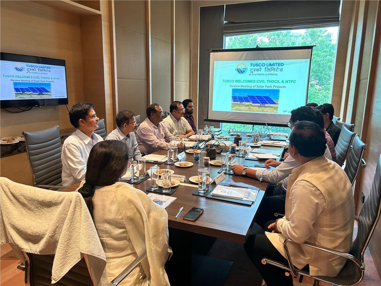 Ms. Rashmita Jha, IRS, Chief Vigilance Officer (CVO) of THDCIL & NTPC, visited TUSCO Ltd., Lucknow on 15th July 2025 and chaired a Review Meeting of Solar Projects being implemented by TUSCO Ltd. TUSCO Ltd., which is a joint venture of THDC India Ltd. and Uttar Pradesh New & Renewable Energy Development Agency (UPNEDA) with an equity partnership in the ratio of 74:26 respectively, is engaged in the development of large-scale Renewable Energy projects across U.P. with a focus on sustainability and clean energy generation.