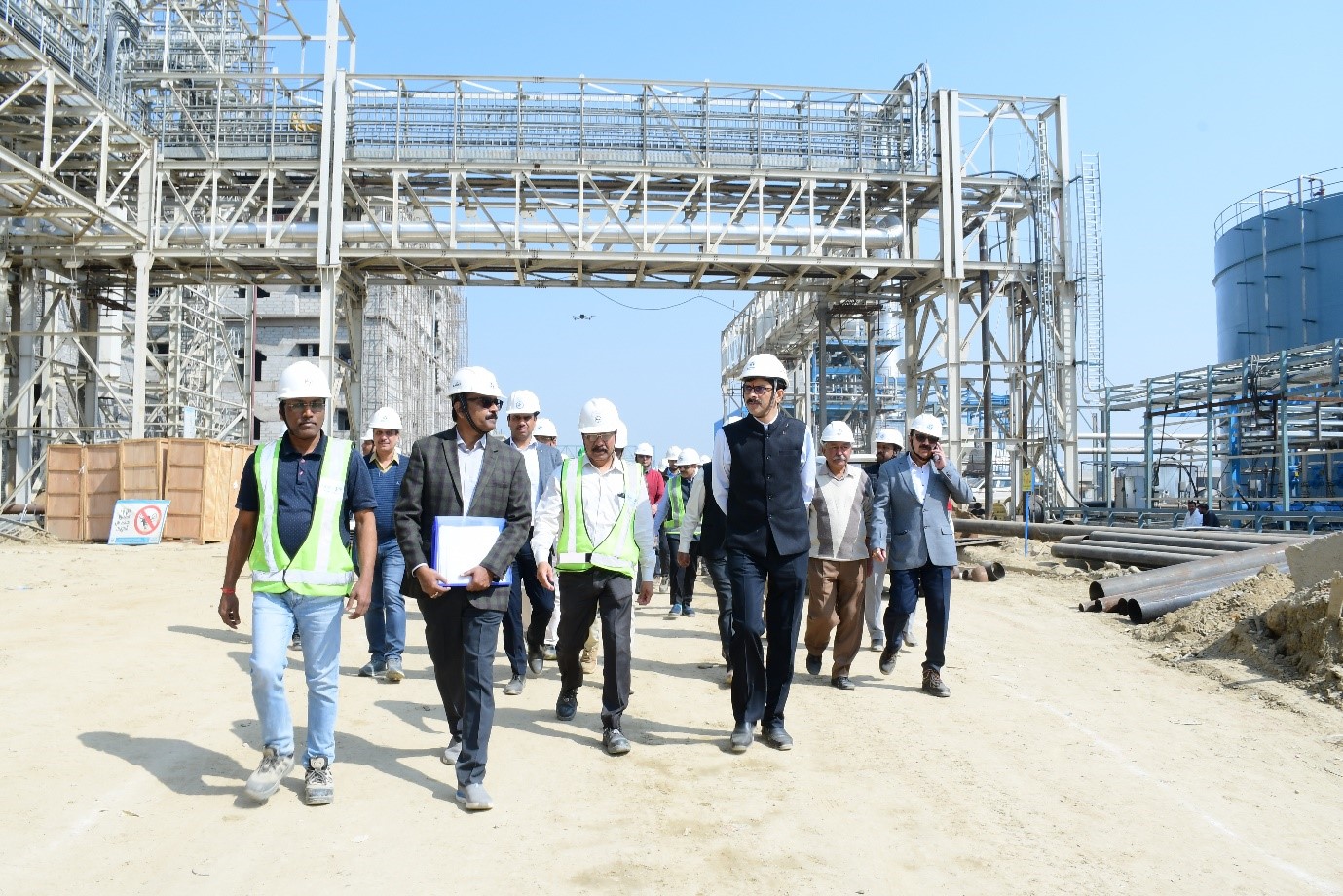 Khurja: 17.02.2024: Shri Pankaj Agarwal, Secretary (Power), MoP, Shri Praveen Gupta, Member (Thermal), CEA and Shri Piyush Singh, Joint Secretary (Thermal) visited the upcoming 1320 MW Khurja STPP to undertake a detailed review of the progress of the project ahead of its commissioning in 2024. The delegates were welcomed by Sh Bhupender Gupta, Director (Technical) and Sh. Kumar Sharad, Executive Director (KSTPP). Sh. Tajinder Gupta, Director (Power), BHEL also extended his greetings to the delegates. In view of Boiler Light Up and Synchronization an in depth inspection was carried out for Unit 1 Boiler, ESP & FGD and One of the most important element Condensate Extraction Pump (CEP) was inaugurated by Shri Agarwal by giving a command from the control room. He motivated the entire project team and undertook a detailed assessment of the progress of different packages and timelines of various upcoming milestones while imparting valuable insights. Sh. Gupta, Director (Technical) appraised the delegates for the successful completion of various milestones such as TG Barring Gear, Auxiliary Boiler commissioning etc.and underscored their commitment of timely commissioning the 1st unit (660 MW) of the project by May 2024. Sh. Pankaj Agarwal, Secretary (Power) addressed the KSTPP team and highlighted the impact of the project upon the energy landscape in north India, particularly the home state of the project i.e. Uttar Pradesh, in light of the nation’s steadfast commitment of exponential increase in power generation. The site visit was followed by a plantation drive by the delegates to commemorate the occasion. Senior Officials of THDC, NTPC, BHEL, LMB Thyssenkrupp etc. were also present during the entire event.