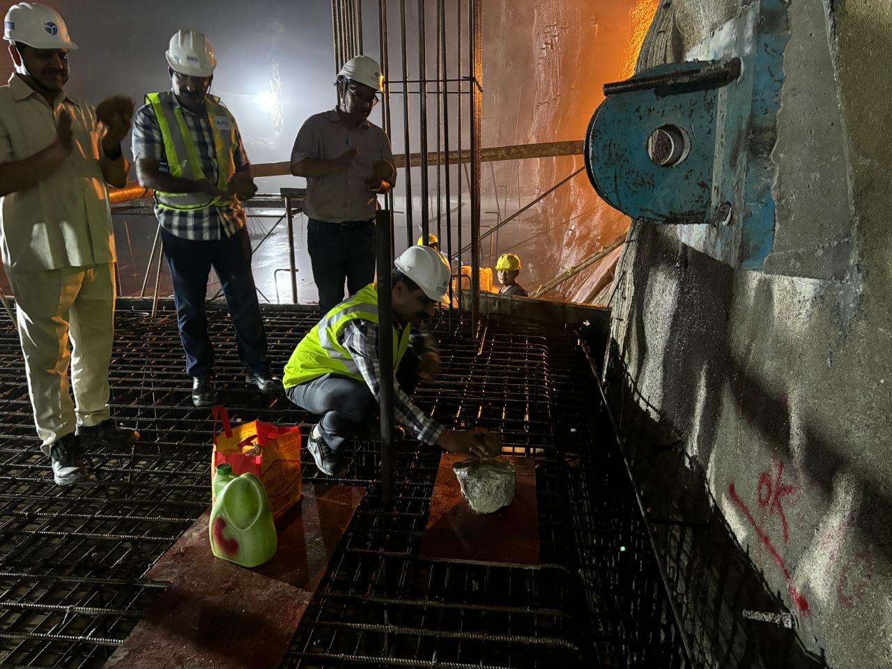 The raft concrete for the Butterfly Valve Chamber (BVC) of THDCIL’s 444 MW Vishnugad-Pipalkoti Hydro Electric Project (VPHEP) commenced on 31st July 2024. The Head of the Project and Chief General Manager, Sh. Ajay Verma, along with Sh. K.P. Singh (AGM (Incharge), TBM&PH), Sh. Ani Bhatt (DGM, TBM), and HCC Project Manager, Sh. Sajit Kumar, laid the foundation stone, marking a significant milestone in the ongoing construction project. This phase is crucial as it involves meticulous planning and precise execution to ensure the concrete raft can support the weight and operational stresses of the butterfly valve and its chamber.