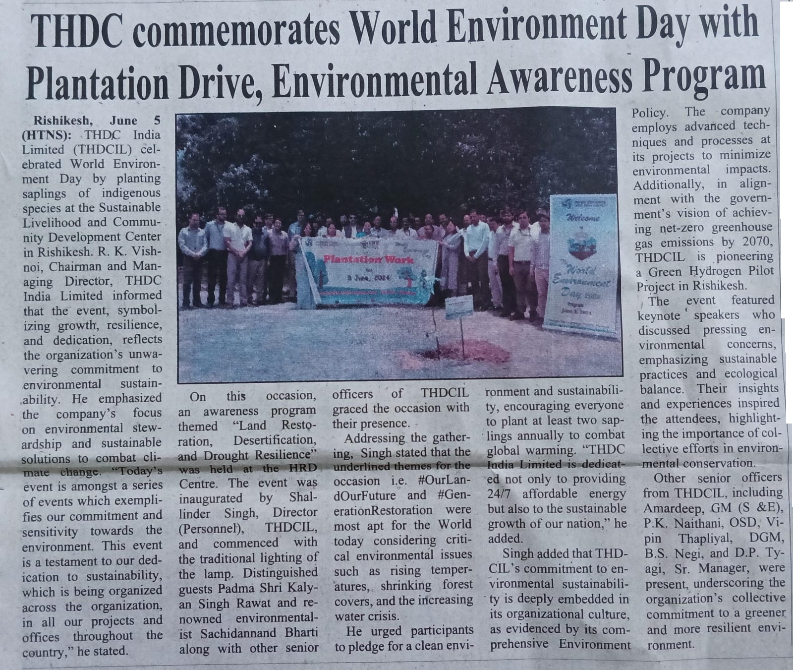 Addressing the gathering, Sh. Singh stated that the underlined themes for the occasion i.e. #OurLandOurFuture and #GenerationRestoration were most apt for the World today considering critical environmental issues such as rising temperatures, shrinking forest covers, and the increasing water crisis. He urged participants to pledge for a clean environment and sustainability, encouraging everyone to plant at least two saplings annually to combat global warming. “THDC India Limited is dedicated not only to providing 24/7 affordable energy but also to the sustainable growth of our nation,” he added.