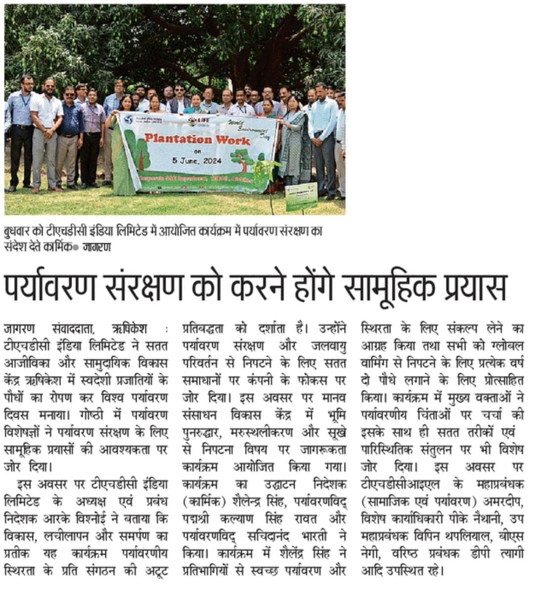 Other senior officers from THDCIL, including Sh. Amardeep, GM (S &E), Sh. P.K. Naithani, OSD, Sh. Vipin Thapliyal, DGM, Sh. B.S. Negi, and Sh. D.P. Tyagi, Sr. Manager, were present, underscoring the organization’s collective commitment to a greener and more resilient environment.