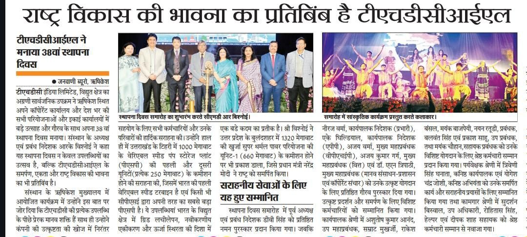 As part of the celebrations, the organization honoured employees and their families through various felicitations for excellence in performance, academics, and competitions. The day also featured cultural performances, symbolizing the unity and talent within the THDCIL family.