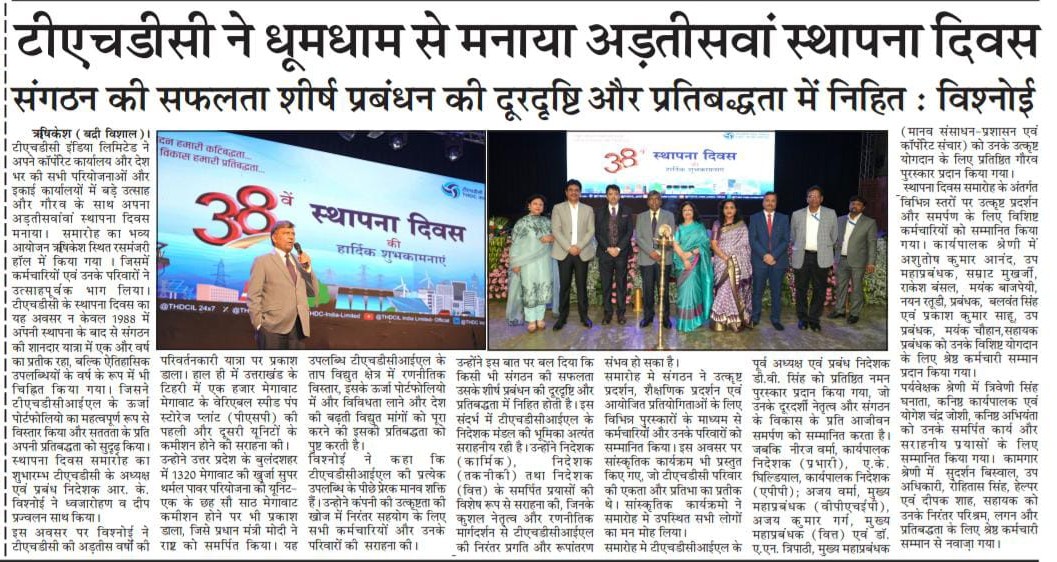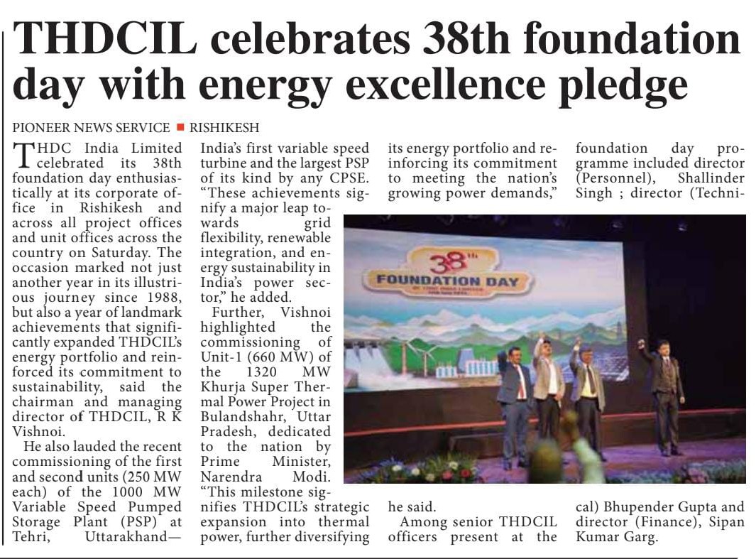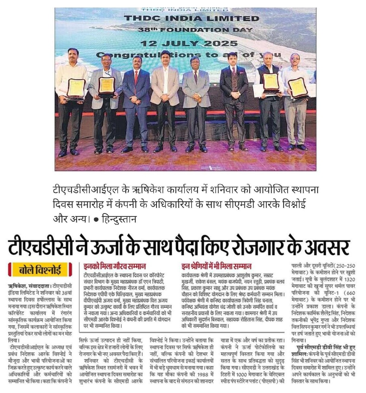 He emphasized that while the Foundation Day is a celebration of legacy, it is also a moment to reaffirm THDCIL’s strategic vision of becoming a leading energy organization aligned with India’s Net Zero commitments, energy security goals, and nation-building aspirations.