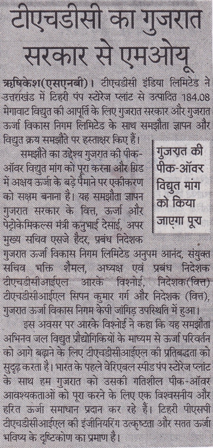 Sh. Sourav Nandy, GM (Finance), GUVNL, Sh. R. K. Verma, AGM, THDCIL, Sh. Ajay Vaish, DGM, THDCIL and other officers of Govt. of Gujarat and GUVNL were also present during the occasion.
