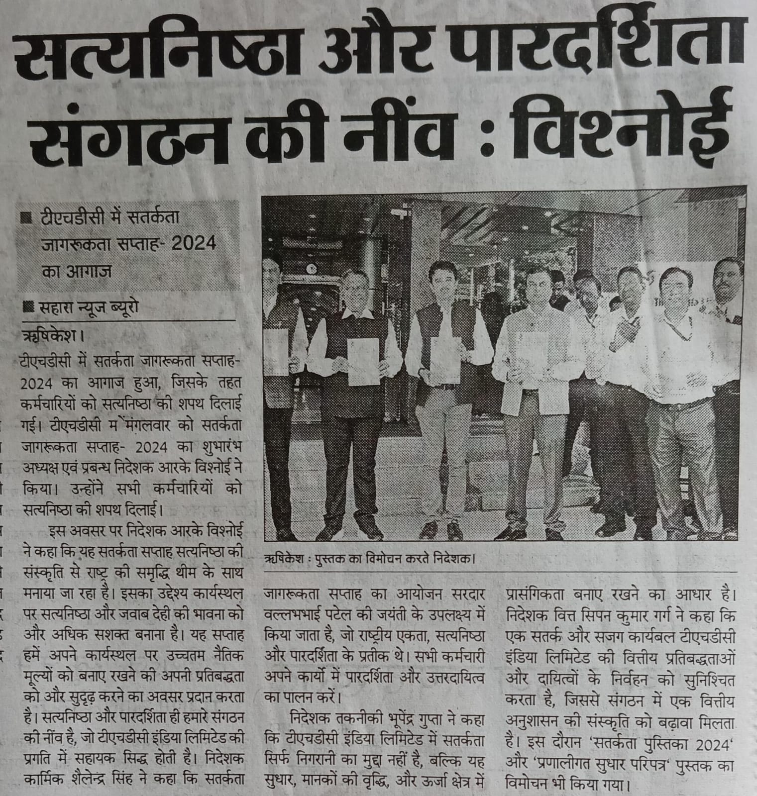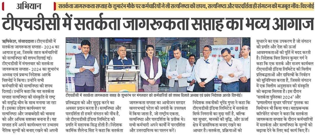 During this significant event, Sh. R. K. Vishnoi, Chairman & Managing Director, along with esteemed directors, including Director (Personnel), Director (Technical) and Director (Finance), also unveiled two publications viz., the Vigilance Booklet 2024, designed to enhance awareness and adherence to vigilance practices among employees, and the Booklet Containing Systemic Improvement Circulars Issued by Vigilance from 2018 to 2024, which outlines sustained corrective measures and advancements within the system. These resources underscore THDC India Limited's unwavering commitment to integrity and transparency in all its operations.