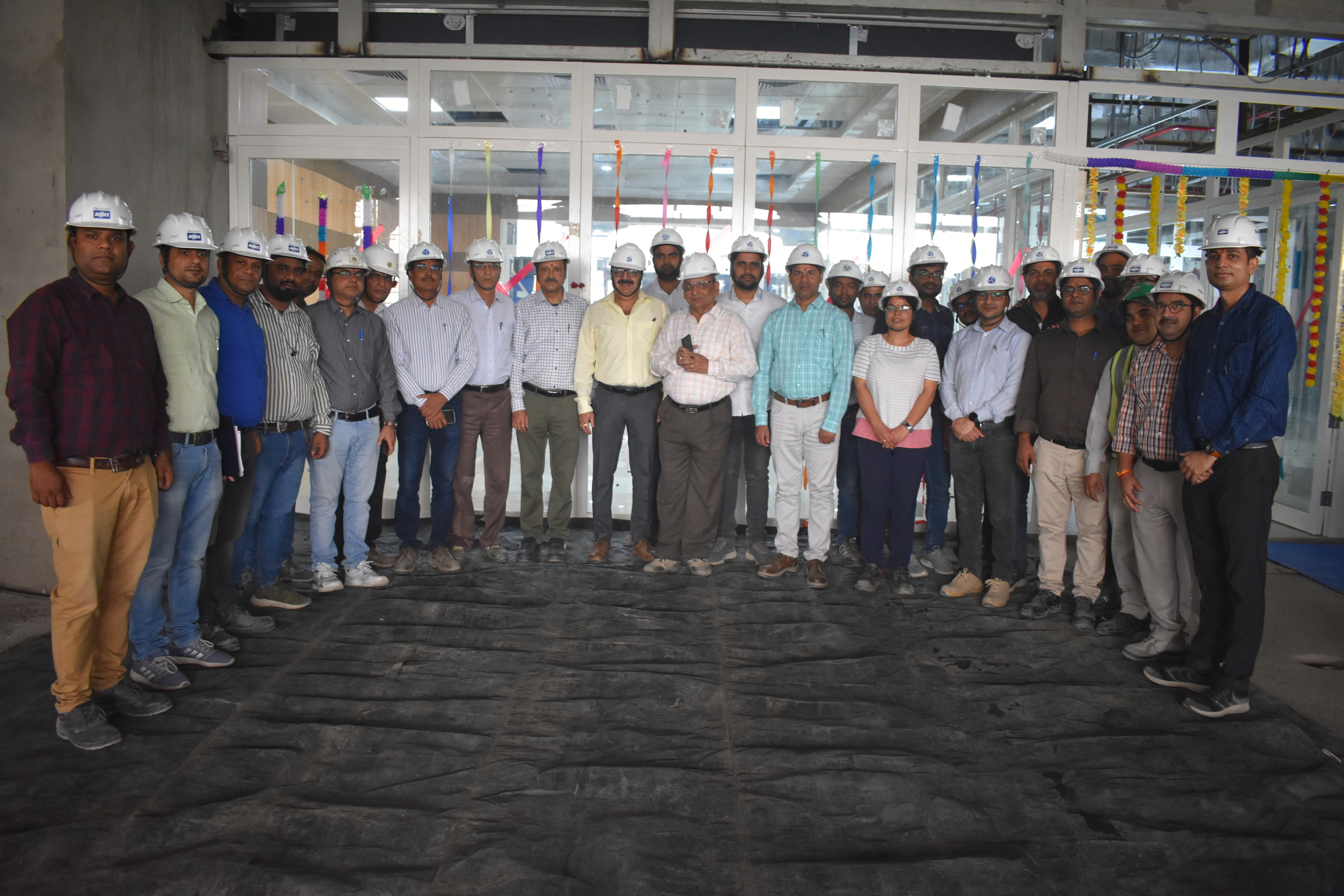 खुर्जा सुपर थर्मल पावर प्रोजेक्ट (2x660 मेगावाट) के केन्द्रीय कंट्रोल रूम में सभी पैनल्स को स्थापित करने के उपरांत दिनांक 09.11.2023 को DCS (Distributed Control System) के कंप्यूटर कक्ष का उद्घाटन परियोजना के कार्यकारी निदेशक श्री कुमार शरद के कर कमलों द्वारा फीता काटकर किया गया। इसी के साथ ही DCS के सभी 43 पैनल्स को सफलता पूर्वक चार्ज किया गया। DCS के द्वारा ही CCR (Central Control Room) में स्थित पैनल्स के माध्यम से सम्पूर्ण प्रोजेक्ट के विभिन्न सिस्टम तथा सब-सिस्टम को संचालित किया जाता है तथा किसी भी फॉल्ट से सुरक्षित तरीके से निपटा जाता है। प्रोजेक्ट के आगामी मुख्य लक्ष्यों Turbine Generator on Barring Gear तथा Boiler Light-up के लिए DCS का चार्ज होना अतिआवश्यक था। उपरोक्त अवसर पर परियोजना के कार्यकारी निदेशक श्री कुमार शरद ने इस महत्वपूर्ण उपलब्धि के लिए पूरी टीम को बधाई दी।