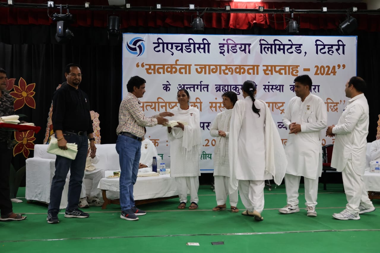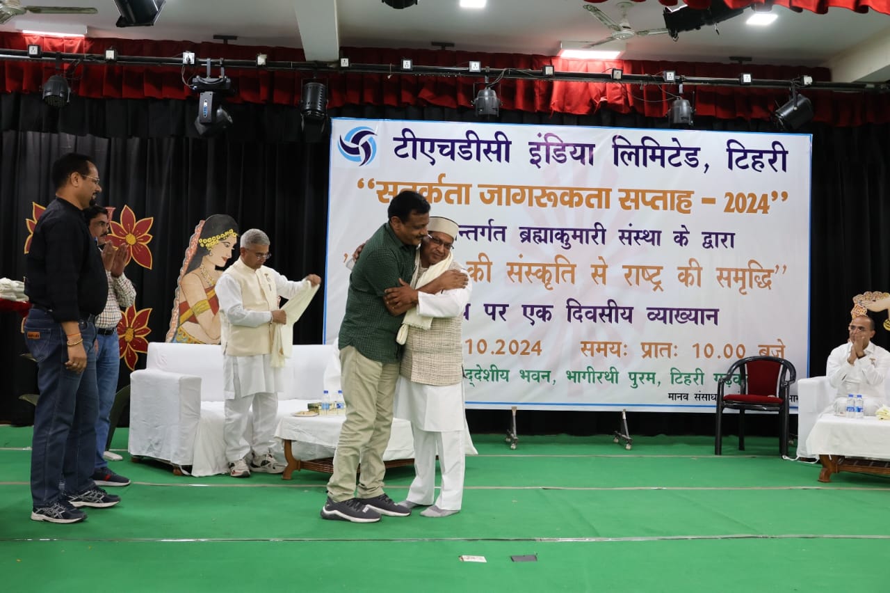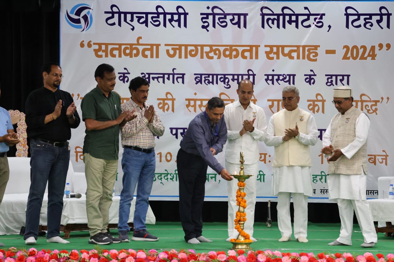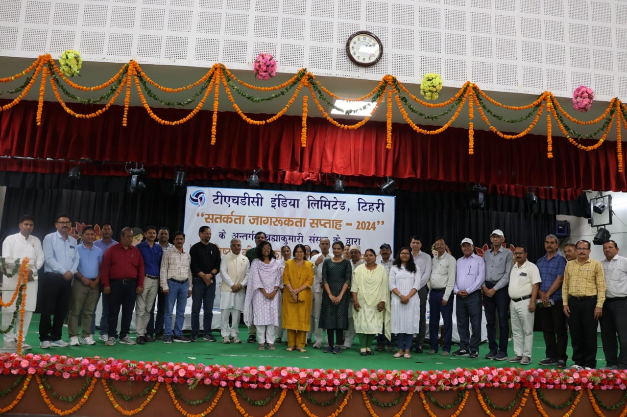 टीएचडीसी इंडिया लिमिटेड में "सत्यनिष्ठा की संस्कृति से राष्ट्र की समृद्धि थीम के साथ "सतर्कता जागरूकता सप्ताह- 2024" का आयोजन किया जा रहा है, इस अभियान के अंतर्गत दिनांक 15.10.2024 को बहुउद्देशीय भवन भागीरथीपुरम टिहरी में "सत्यनिष्ठा की संस्कृति से राष्ट्र की समृद्धि" विषय पर मानव संसाधन एवं प्रशासन विभाग टिहरी के सहयोग से एक व्याख्यान कार्यक्रम का आयोजन किया गया, इसमें ब्रह्मकुमारीज के मुख्य मोटिवेशनल स्पीकर्स प्रो० श्री ई. बी. गिरीश, बीके श्री बीरेन्द्र एवं बीके श्री दीपेश ने व्याख्यान दिये। कार्यक्रम का शुभारंभ अपर महाप्रबंधक (मा॰सं॰ एवं प्रशा०) श्री डी. पी. पात्रो द्वारा अतिधियों का स्वागत कर एवं उपस्थित जनसमूह को संबोधित कर किया। ब्रह्मकुमारीज प्रो० श्री गिरीश ने ओजस्वीपूर्ण व्याख्यान देते हुए आम जनमानस में सत्यनिष्ठा की संस्कृति के विकास में आध्यात्मिक पहलुओं की भूमिका को बहुत बारीकी से समझाया। कार्यक्रम में श्री ए. के. कंसल अपर महाप्रबंधक (बाँध), श्री एन. के. नौटियाल उप महाप्रबंधक (सतर्कता), श्री डी. सी. भट्ट उप महाप्रबंधक (वि‌द्युत), श्री संजय गोयल उप महाप्रबंधक (एच एम), श्री ए. के. उनियाल वरिष्ठ प्रबंधक (बांध) एवं श्री मोहन सिंह, वरि. प्रबन्धक (एच.आर), श्री मनवीर सिंह नेगी, वरि. प्रबन्धक (जन-सम्पर्क), श्री दीपक उनियाल, प्रबन्धक (एच.आर) के अतिरिक्त कोटेश्वर एवं नई पररयोजना नई टिहरी के स्थाई कर्मचारी, संविदा कर्मचारी एवं अप्रेन्टिशिप (ट्रेनी) उपस्थित रहे।