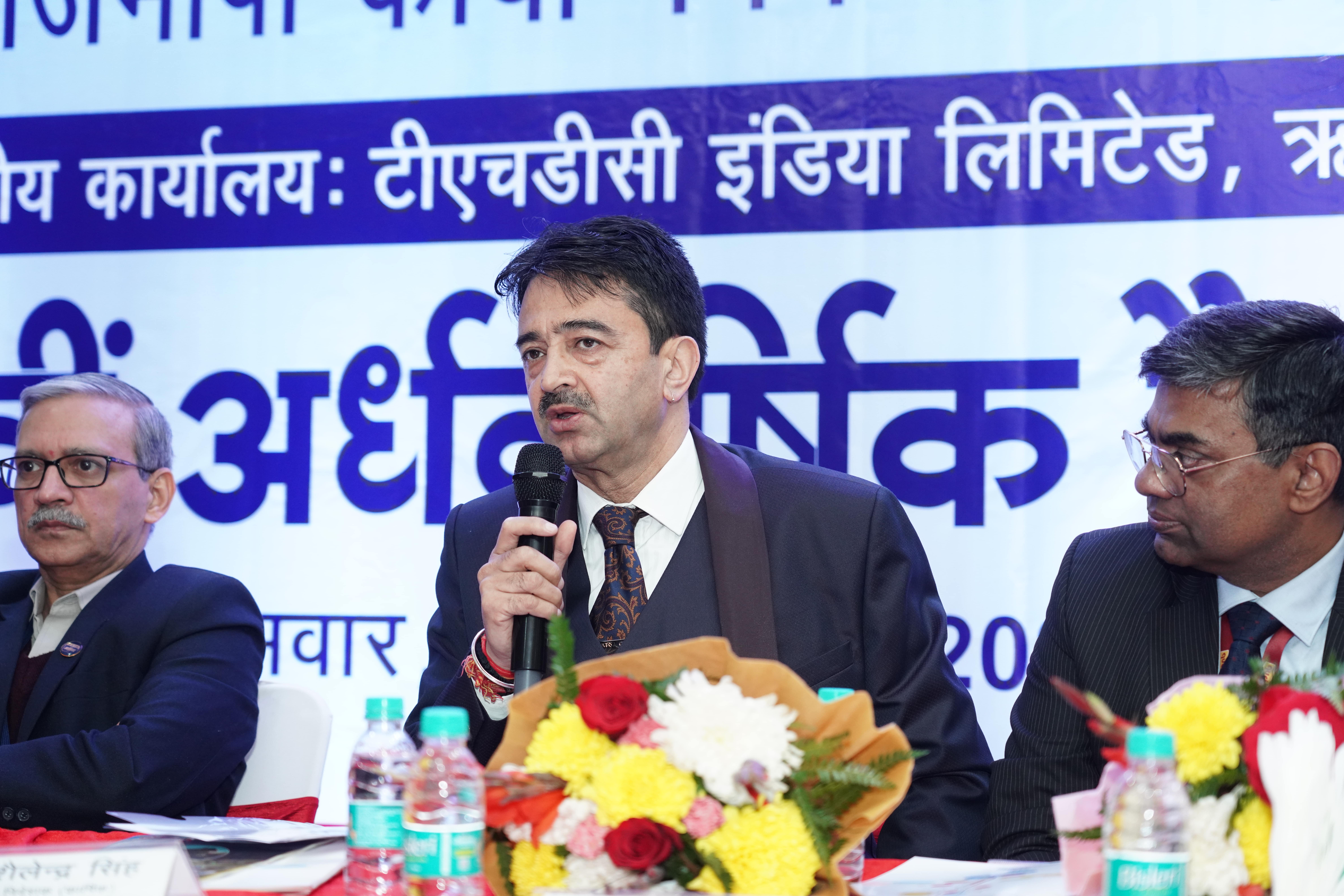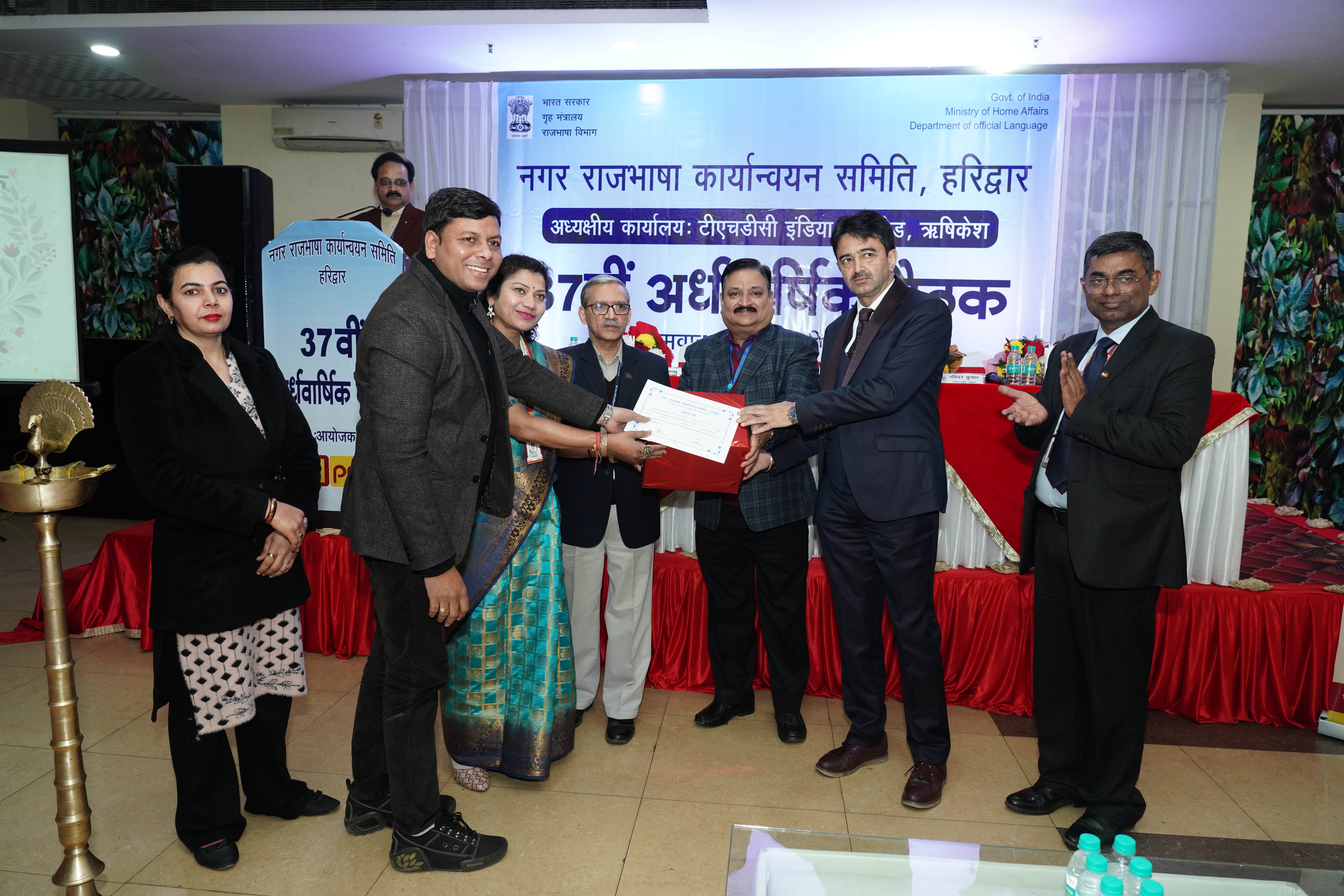 दिनांक 29.01.2024 - हरिद्वार – श्री आर.के.विश्नोई, अध्यक्ष एवं प्रबंध निदेशक, टीएचडीसी इंडिया लिमिटेड ने निगम के कारपोरेट कार्यालय, ऋषिकेश को नराकास राजभाषा वैजयंती (प्रथम पुरस्कार) प्राप्त होने पर हर्ष व्यक्त किया। उन्होंने कहा कि यह पुरस्कार निगम में राजभाषा कार्यान्वयन के उत्कृष्ट निष्पादन को प्रदर्शित करता है। उन्होंने निगम के अधिकारियों व कर्मचारियों से आग्रह किया कि राजभाषा कार्यान्वयन की दिशा में वे अपना अमूल्य योगदान देना जारी रखें। नगर राजभाषा कार्यान्वयन समिति की 37वीं बैठक 29.01.2024 को होटल गार्डेनिया, सिडकुल, हरिद्वार में पंजाब नेशनल बैंक, मंडल कार्यालय, हरिद्वार के सौजन्य से आयोजित की गई। बैठक की अध्‍यक्षता नराकास, अध्‍यक्ष एवं टीएचडीसी के निदेशक(कार्मिक), श्री शैलेन्‍द्र सिंह ने की। बैठक में हरिद्वार, रूड़की, ऋषिकेश एवं पर्वतीय क्षेत्र में स्‍थित केंद्र सरकार के प्रतिष्ठित सदस्‍य संस्‍थानों के प्रमुखों एवं प्रतिनिधियों एवं राजभाषा अधिकारियों ने बड़ी संख्‍या में प्रतिभागिता की । कार्यक्रम में सर्वप्रथम समिति के अध्‍यक्ष एवं टीएचडीसी के निदेशक (कार्मिक), श्री शैलेन्‍द्र सिंह, पंजाब नेशनल बैंक के मंडल प्रमुख, श्री रवीन्द्र कुमार, बीएचईएल के कार्यपालक निदेशक, श्री टी.एस.मुरली एवं अन्‍य विशिष्‍ट अतिथियों का स्‍वागत किया गया। कार्यक्रम का शुभारंभ दीप प्रज्‍ज्‍वलित कर किया गया। बैठक में नराकास राजभाषा वैजयंती योजना के अंतर्गत सदस्य संस्थानों को राजभाषा शील्ड प्रदान कर सम्मानित किया गया। सार्वजनिक क्षेत्र के उपक्रमों की श्रेणी में टीएचडीसी इंडिया लिमिटेड ने प्रथम, बीएचईएल, हरिद्वार ने द्वितीय एवं भारत पेट्रोलियम कारपोरेशन लिमिटेड, लंढोरा ने तृतीय पुरस्कार प्राप्त किया। श्रेणी-2 भारत सरकार के कार्यालय/बोर्ड/स्वायत्तशासी निकाय के अंतर्गत केंद्रीय विद्यालय, हरिद्वार ने प्रथम, राष्ट्रीय जल विज्ञान संस्थान, रुड़की ने द्वितीय, सीएसआईआर-केंद्रीय भवन अनुसंधान संस्थान, रुड़की ने तृतीय तथा अखिल भारतीय आयुर्विज्ञान संस्थान, ऋषिकेश ने प्रोत्साहन पुरस्कार प्राप्त किया। राष्ट्रीयकृत बैंक एवं बीमा कंपनियों की श्रेणी में पंजाब नेशनल बैंक, मंडल कार्यालय, हरिद्वार, दि न्यू इंडिया एश्योरेंस कंपनी लिमिटेड, ऋषिकेश एवं बैंक ऑफ बड़ौदा, हरिद्वार शाखा को तृतीय पुरस्कार से पुरस्कृत किया गया। बैठक के दौरान पुरस्कार वितरण समारोह में समिति के अध्यक्ष, श्री शैलेन्द्र सिंह ने अपने कर-कमलों से विजेता संस्थानों के प्रमुख एवं प्रतिनिधियों को ये शील्ड प्रदान की। साथ ही छमाही के दौरान आयोजित विभिन्न प्रतियोगिताओं के विजेताओं को भी पुरस्कृत किया गया। बैठक में नराकास स